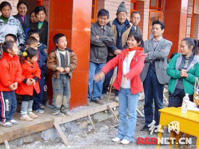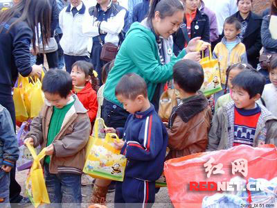 (愛心網(wǎng)友在為孩子們分發(fā)物資)