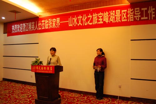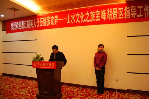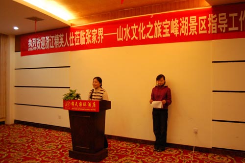 12月26日,浙江省雙龍工人療養(yǎng)院副院長胡亞娜、辦公室主任賈似錦等一行22人赴寶峰湖考察?疾靾F對寶峰湖的美景贊不絕口,尤其是泛舟在寶峰湖,優(yōu)美婉轉(zhuǎn)的土家山歌讓其留戀往返。