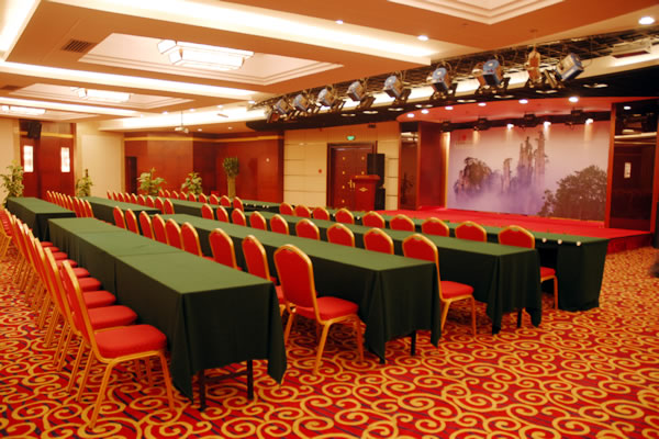 擁有設(shè)備一流、裝修豪華的多功能會議廳、會見廳和談判廳,可以同時提供600人的會議服務(wù),并可以按您的需要提供各類會議接待和多款宴會設(shè)計。談判廳是商務(wù)、政務(wù)洽談的最佳場所,位置隱蔽、隔音效果佳,中間是一個談判桌擺20個座位。