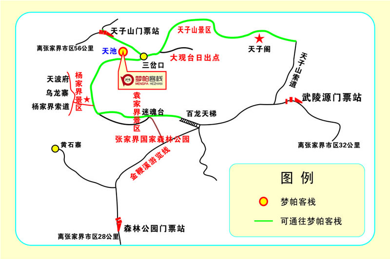 交通狀況:張家界與全國(guó)各大中城市有飛機(jī)、高速公路和火車(chē)相連,景區(qū)內(nèi)環(huán)?瓦\(yùn)車(chē)輛招手即停,景區(qū)游道四通八達(dá)。張家界夢(mèng)帕客棧天子山景區(qū)天池店,位于張家界著名游覽線天子山至袁家界的主干線上,進(jìn)出方便。