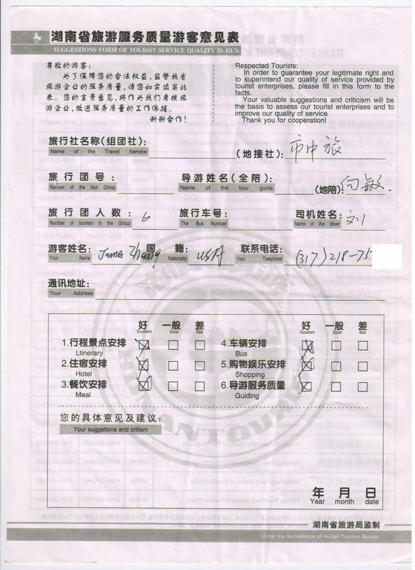 美國(guó)Jamya zhang一行6人旅游質(zhì)量回饋:一切都好!