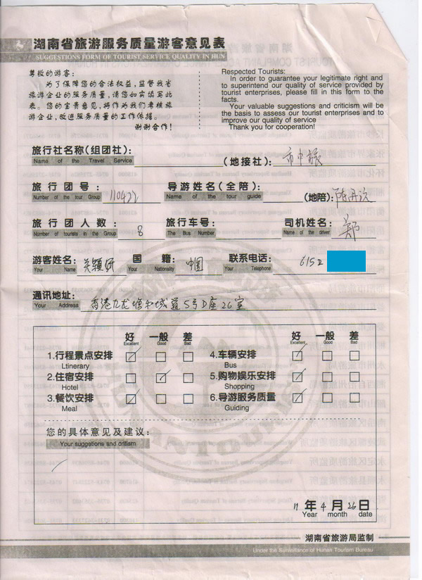 香港關(guān)小姐一行8人旅游質(zhì)量回饋