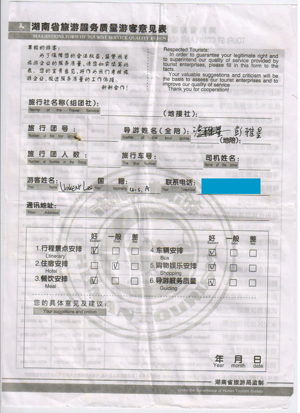 美國Ulee先生一行5人旅游質(zhì)量回饋