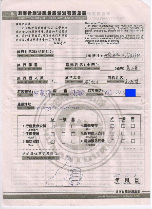 馬來西亞鐘小姐一行6人旅游質(zhì)量回饋: