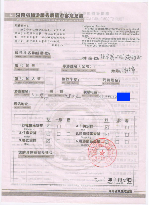 馬來西亞卜先生一行7人旅游質(zhì)量回饋