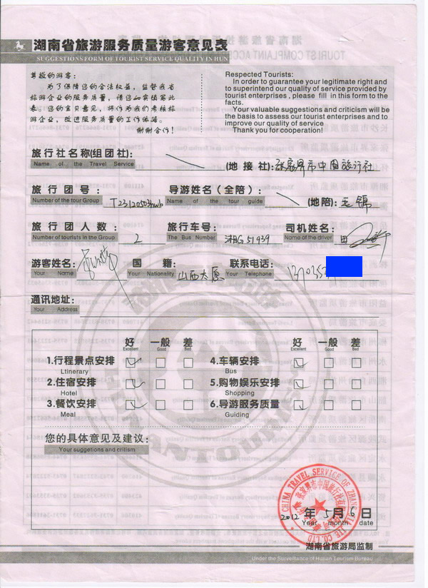 山西李小姐一行2人旅游質(zhì)量回饋