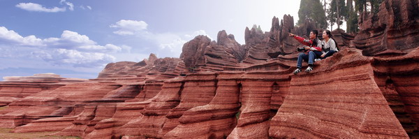 行走在這亙古不變的質(zhì)樸之間,無(wú)意卻聯(lián)通了古今,靈魂也自然滌盡所有浮華焦躁,沉靜下來(lái)。這或許是紅石林之比于其他去處最獨(dú)特的地方了。