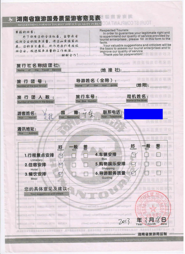 下一篇:湖南楊先生一行11人旅游質(zhì)量回饋單