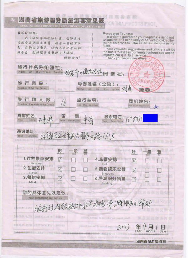 下一篇:臺灣楊先生一行12人旅游質量回饋單