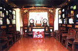 【中堂講解】現(xiàn)在您所走進(jìn)的是傳統(tǒng)土家建筑的第一間房子,我們稱之為中堂或者堂屋。堂屋是個莊重.講禮的地方,祭祀,婚葬嫁娶一類的大事都要在這兒興行。堂屋正中是神龕,一般土家都得供奉相當(dāng)豪華精致的神龕,最上面雕的是二龍戲珠,兩邊是丹鳳朝陽,中間是福壽祿三星高照,土家人早晚都在這里朝拜。湘西土家人是多神論的,雖然沒有自己正式的宗教,但是有一定雛形的由巫師主持的原紿教——土老司。土家的土老司為”梯瑪“。做土老司的主要內(nèi)容就是祭祀土王,敬奉土家祖先。如果您有興趣,也可以在這兒 下您的心愿,接受土家神靈的庇護(hù),拜上拜一拜,保您心想事成同,健康長壽。