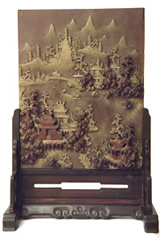 【鎮(zhèn)館之寶——五彩石雕講解】這是一塊用天然五彩石雕雕刻而成的一幅明代晚期的作品,反映的是宋代人日常生活的一幅“漁樵耕讀圖”。其中可見漁夫在水中撒網(wǎng),樵夫在山中伐木,橋面上有牧童牽牛,窗臺上可見書生捧書,作者根據(jù)五彩石的自然顏色,布局精純,雕鏤細(xì)微,一尺之中包羅萬象,F(xiàn)在經(jīng)故宮愽物院的專家反復(fù)考證,認(rèn)為這塊五彩石雕具有極高的收藏價值,受到了包括沈從文.黃永玉 等大師的高度贊譽(yù),被譽(yù)為秀華山館的“鎮(zhèn)館之寶”。